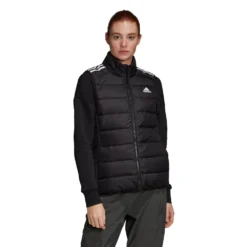 City streets, mountain village or exploring the backcountry, layering is your ticket to comfort in lower temperatures. This adidas vest seals in the heat with the unbeatable warmth of down and synthetic padding insulation. It´s light enough to layer in cold weather and warm enough to stand alone on cool days. And it´s made with recycled materials that you can feel good about. That´s a winning combo of: do good, feel good, look good.