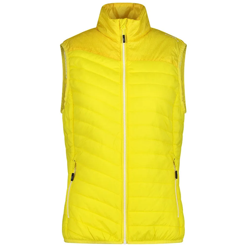 Sleeveless padded jacket with synthetic insulation technology that traps and retains body heat, highly water resistant, and is made without the use of PFCs.