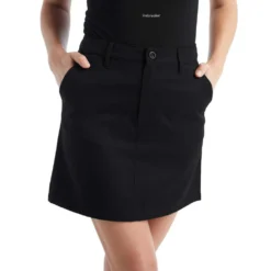 Made from a soft, breathable and all-natural woven twill blending merino wool and organic cotton, this skirt also features front and back pockets, a belt-loop waist, and a front zip closure with natural Corozo buttons.