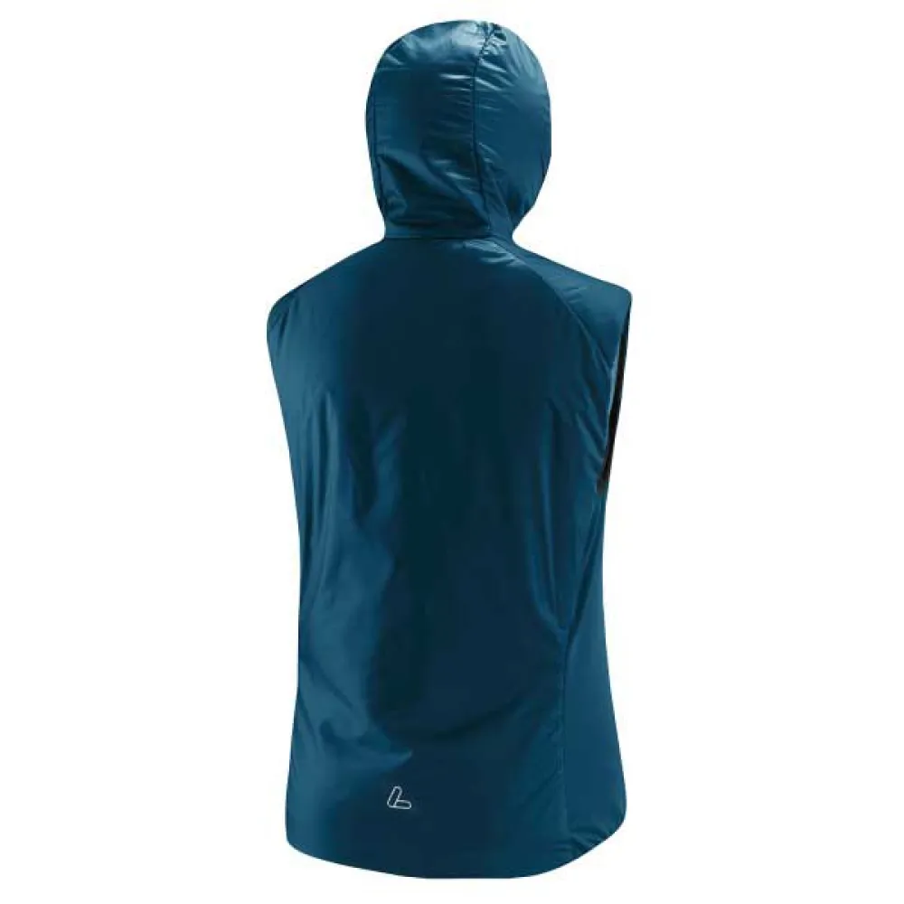 PrimaLoft®GOLD insulation in a material mix with Race Elastic Warm (lateral), transtex® Light lining, windproof, water-repellent, breathable, attached hood, full zip, 2 zip side pockets, sleeveless, elastic waist band, reflectors.