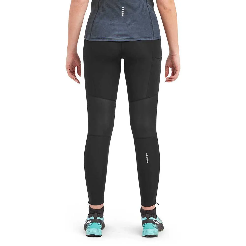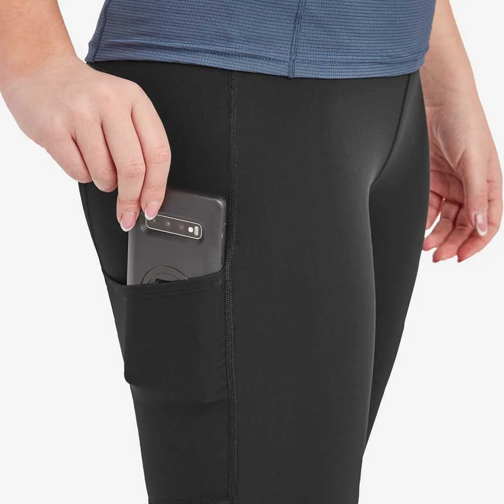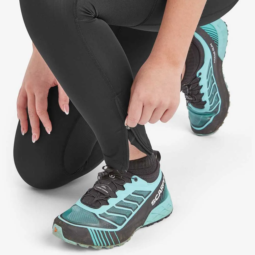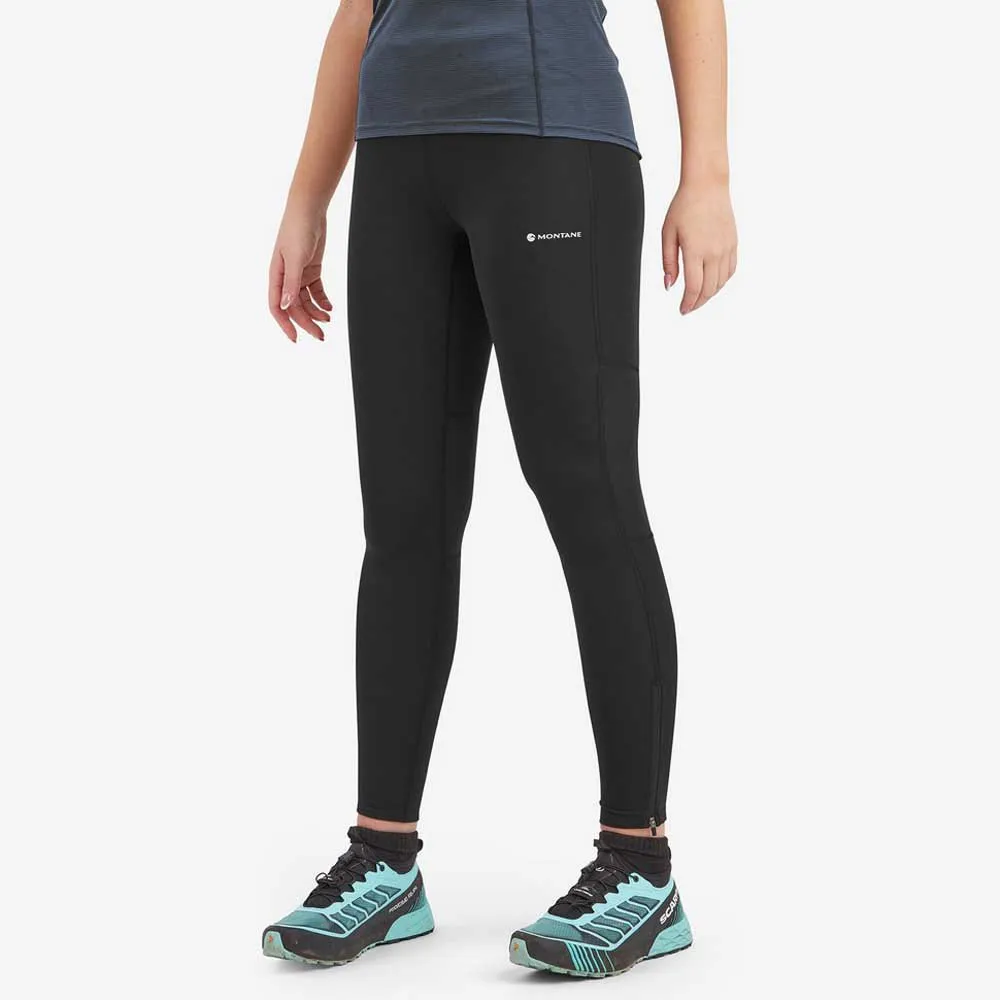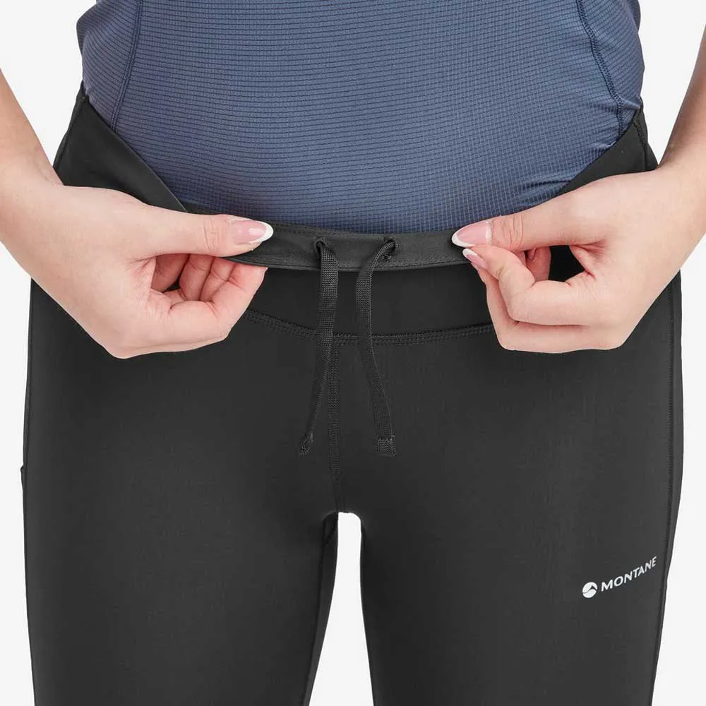 Durable trail tights designed for mountain runners.The Montane Women´s Slipstream Trail Running Tights are a tailored run specific fit designed for movement using a durable unrestrictive fabric which moves with you. These pull-on trail tights have a stretch waistband and internal waist drawcord which ensures the tights stay in place while you’re on the move. Constructed with ECONYL® regenerated nylon yarns, they´re durable while also providing a reduced environmental impact. Designed specifically for Mountain runners these trail running tights are perfect for days on the trail.