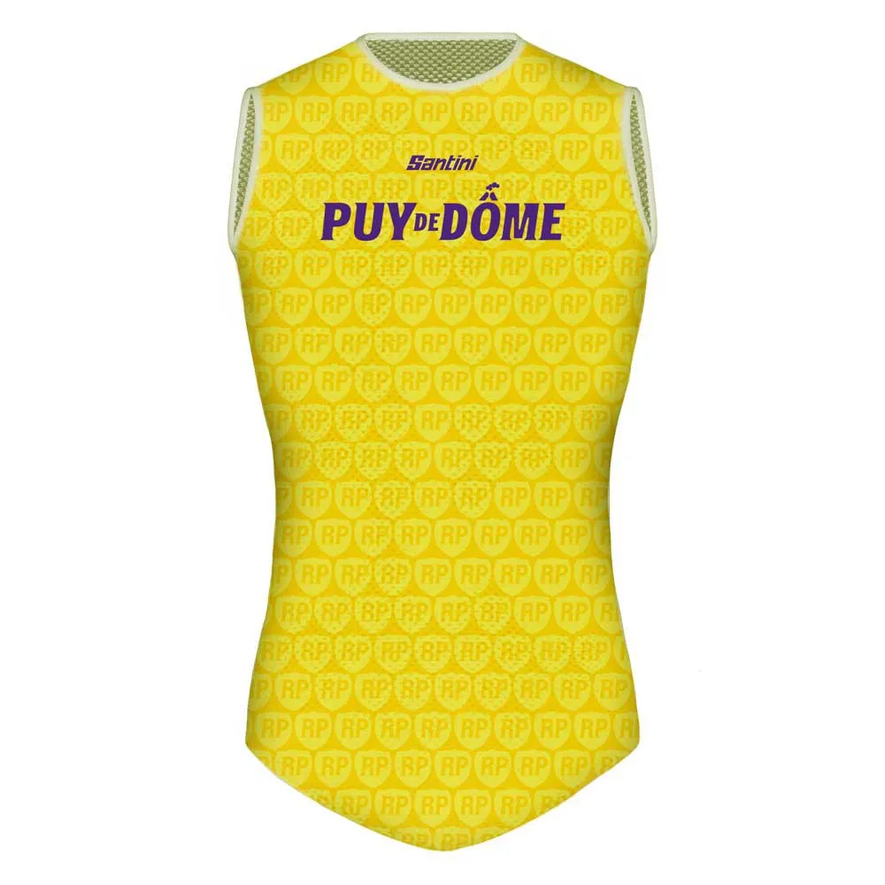 Sleeveless baselayer with a special design dedicated to the the iconic climb of the Puy de Dome and the unique setting of the climb to the top of the dormant volcano. Enjoy the supreme comfort of this sleeveless baselayer engineered for a tight, elastic fit. The elongated cut provides maximum coverage and avoids a bulky feel when worn under bib shorts. A perfect match for your Puy de Dome kit.